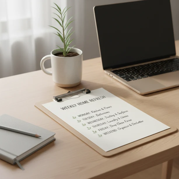 A cleaning schedule helps you stay consistent without feeling overwhelmed. Break tasks into daily, weekly, and monthly routines to manage everything efficiently.