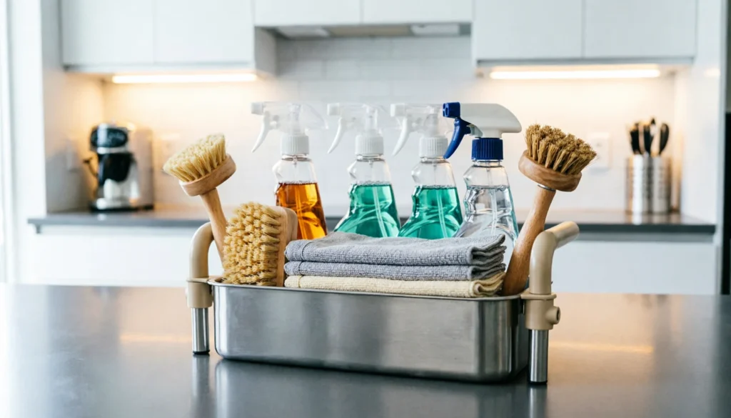Having cleaning supplies easily accessible makes it more likely you’ll clean regularly. Store essentials in a portable caddy so you can quickly tackle messes as they happen.