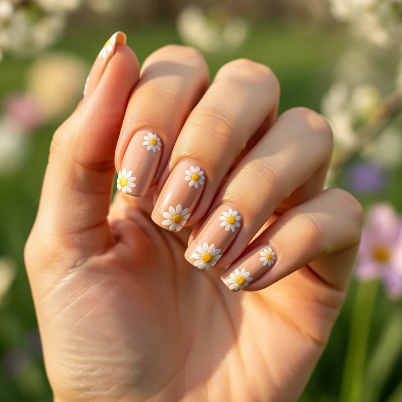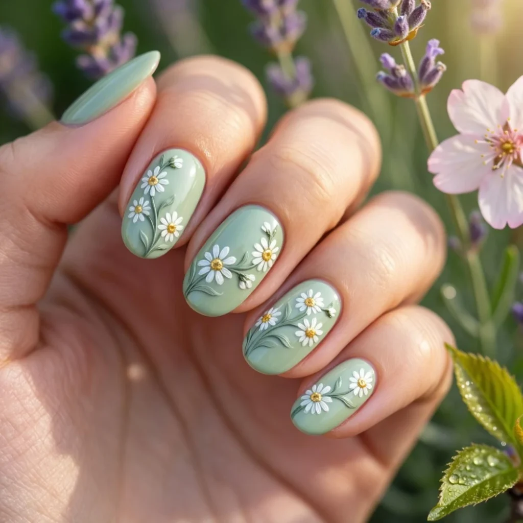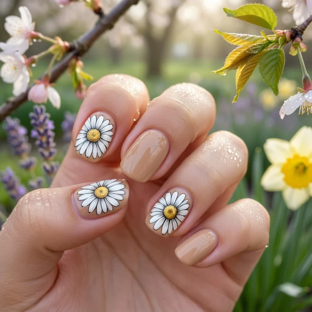 Daisy chain nails are playful and perfect for spring. The small floral patterns create a cheerful and youthful vibe that’s hard to resist.