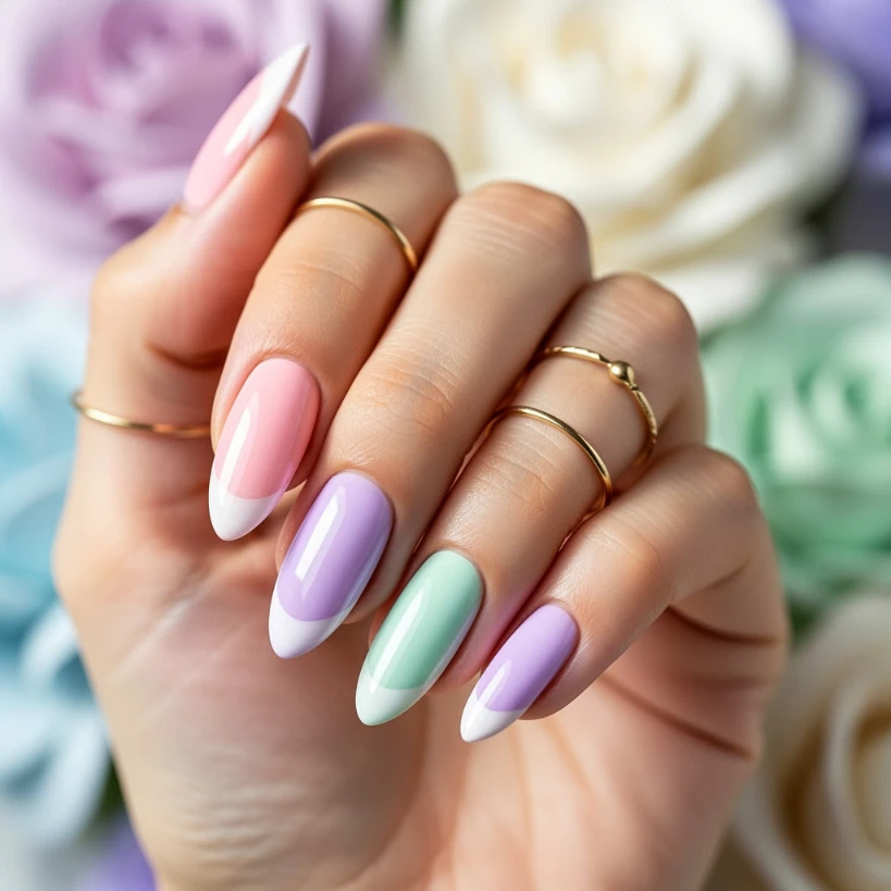 The versatility of pastel French tips is what makes them so popular. You can mix colors on each nail or keep it monochromatic for a cohesive look. Pairing this manicure with gold jewelry or floral outfits enhances its soft aesthetic, making it ideal for brunch dates, casual outings, or springtime events.