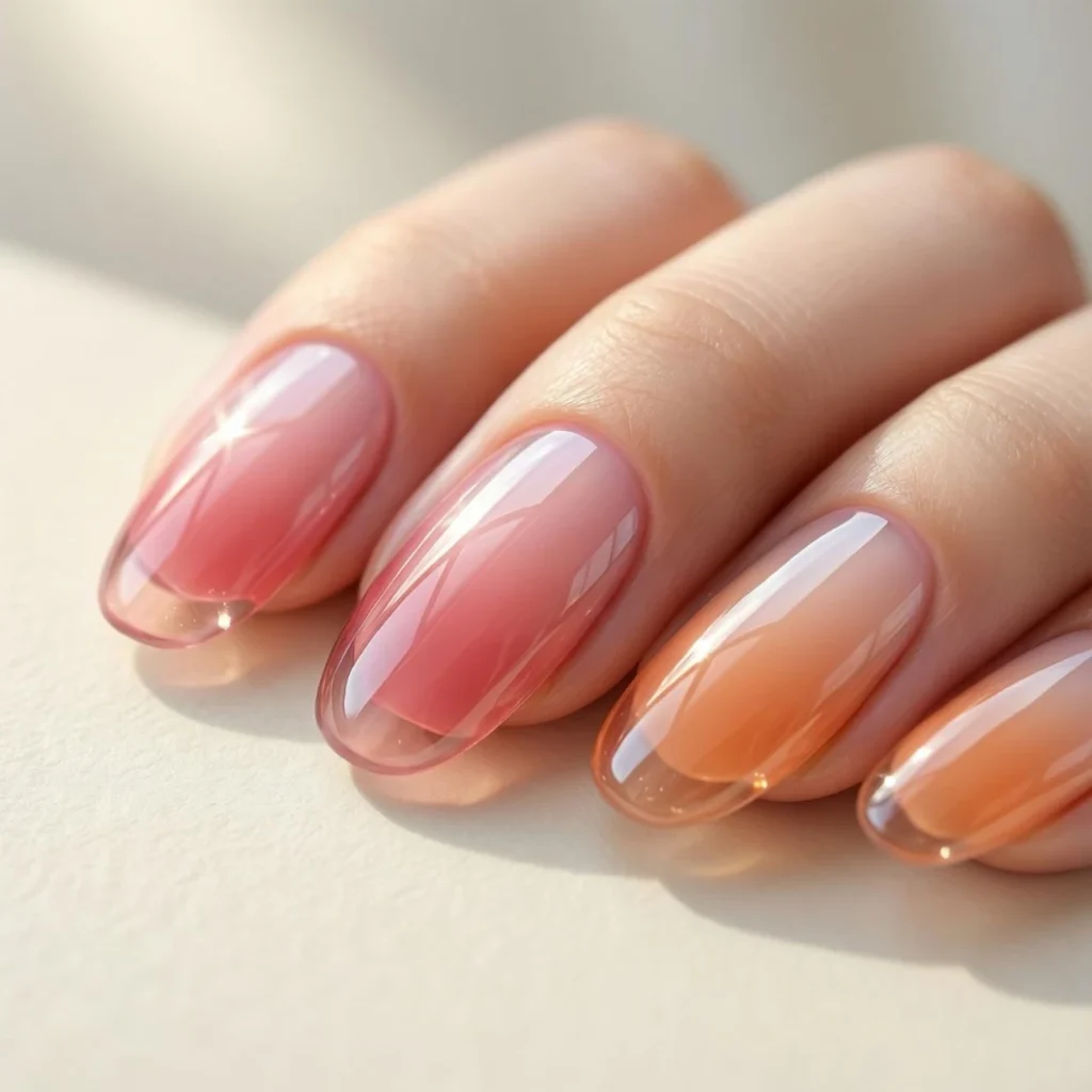 Jelly nails are making a strong comeback this spring with their playful, translucent finish. These nails mimic the look of tinted glass, giving your manicure a fun and youthful appeal. Shades like coral, rose, and soft orange are especially popular for the season.