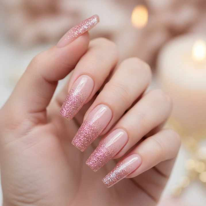 Glitter ombre nails are all about sparkle and elegance. The gradient effect from nude to pink glitter creates a dreamy, soft look that feels both romantic and eye-catching.