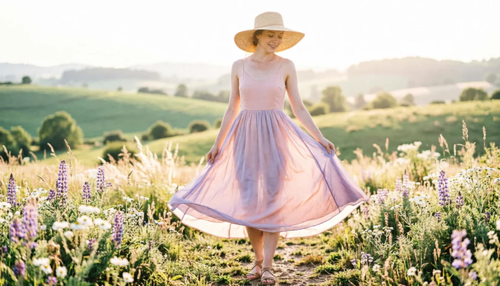A flowy sundress is the ultimate summer staple that never goes out of style. Its lightweight fabric keeps you cool while creating a soft, feminine silhouette perfect for warm days. Pairing it with a straw hat not only adds a stylish touch but also provides protection from the sun, making it both practical and chic for outdoor adventures.