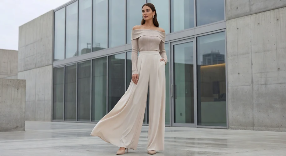 Off-shoulder tops add a touch of elegance and femininity to any outfit. When paired with wide-leg pants, the result is a balanced and stylish look that is both comfortable and chic. The loose fit allows for airflow, making it ideal for hot weather.
