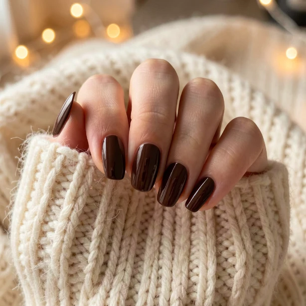 Chocolate brown nails offer a warm and cozy alternative to traditional winter shades. This color pairs beautifully with neutral outfits and adds a sophisticated touch.