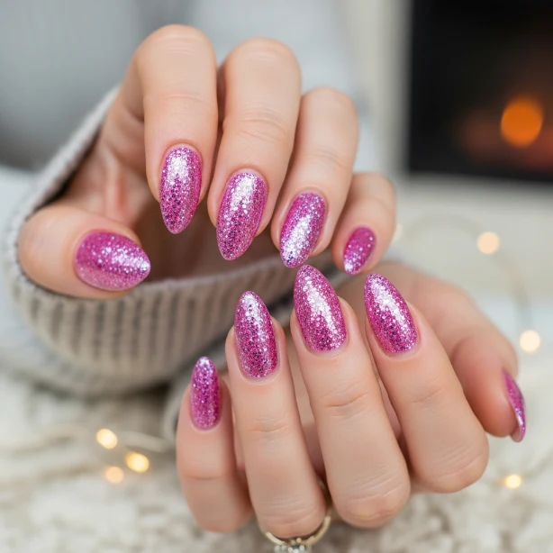5. 💗 Glittery Pink Glam Nails