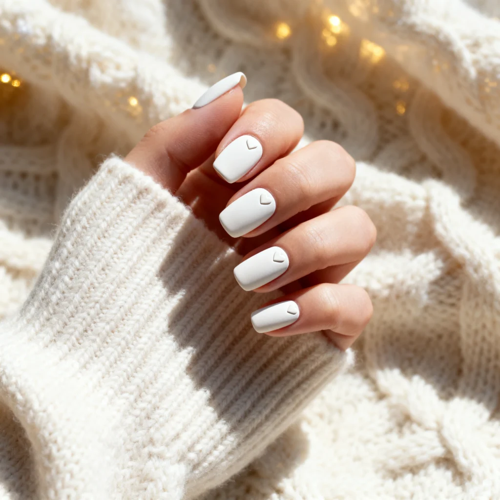 6. 🤍 Minimal White Love Nails