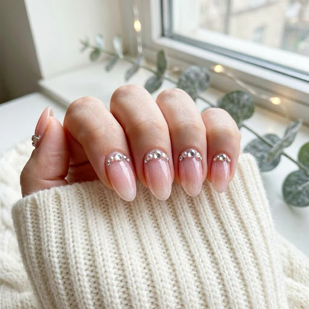 hinestone nails add a luxurious touch to your February manicure. Placing small gems on accent nails creates a dazzling effect that catches the light beautifully. This style is perfect for special occasions or date nights.