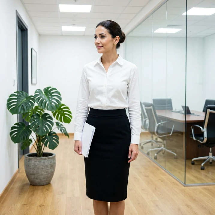 A white button-down shirt combined with a pencil skirt creates a sharp and confident appearance. This combination is especially suitable for corporate roles where a formal dress code is expected. The clean lines and structured fit enhance your overall presentation.