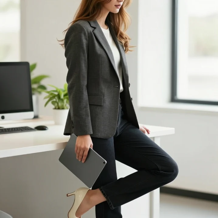 Ensure the jeans are clean, fitted, and free from distressing. Pair with a structured blazer and polished shoes to keep the outfit interview-appropriate. This look shows you understand modern workplace fashion while still respecting professionalism.
