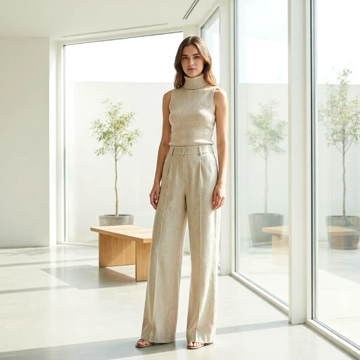 Choose soft fabrics and neutral colors to keep the look refined. Wide-leg pants add movement and sophistication, while the knit top keeps things simple. This outfit helps you stay comfortable and confident throughout your interview.