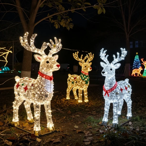 Light-up figures like reindeer or stars bring a playful yet festive vibe. Place them strategically across your yard for balance.
