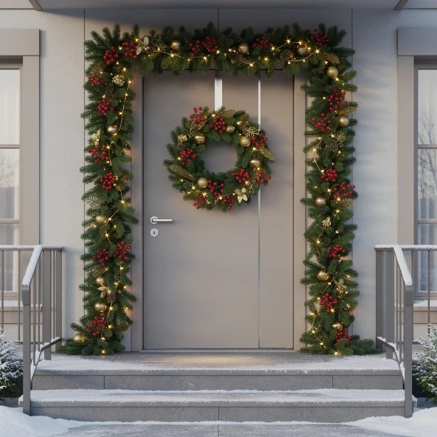 Pair your garland with a matching wreath and seasonal doormat for a cohesive look. Choosing a color theme like gold and white or red and green helps maintain a polished aesthetic that feels thoughtfully designed.