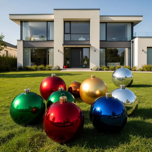 Oversized ornaments make a bold and playful statement. Place them strategically across your lawn or near your entrance for maximum impact.