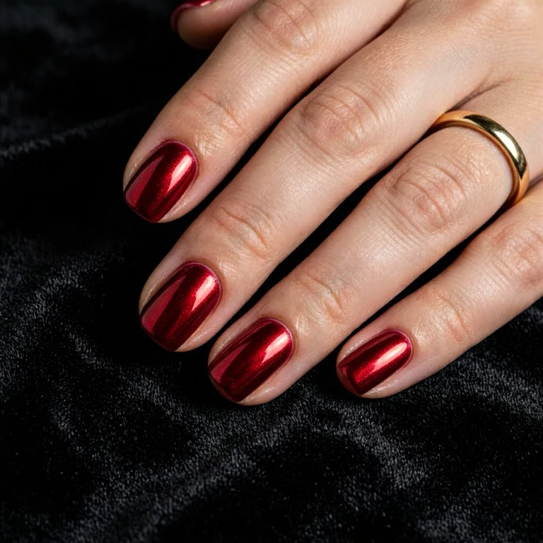 Metallic red nails bring a bold and glamorous touch to your manicure. The reflective finish makes your nails look eye-catching and luxurious.
