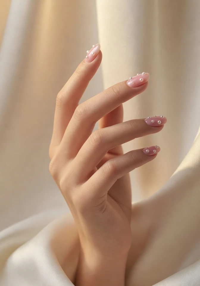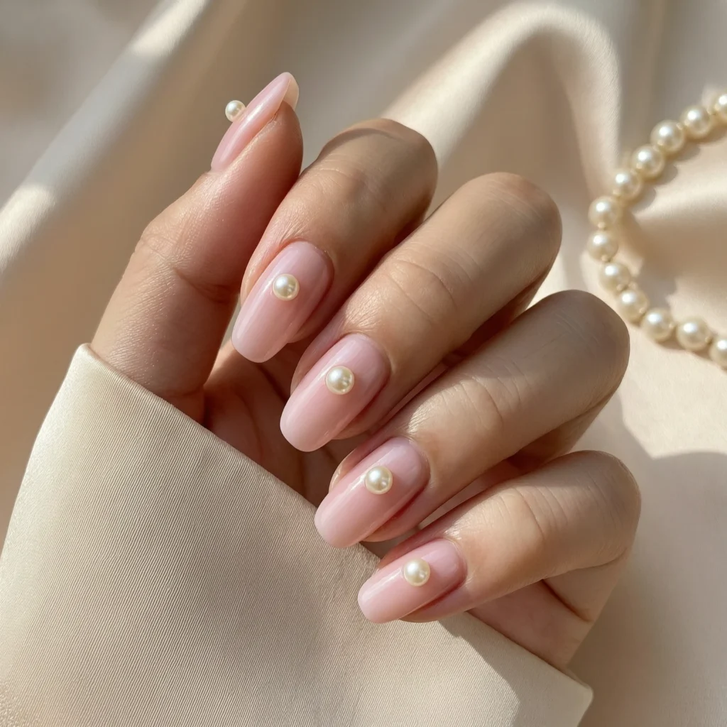 Pearl accents add a touch of luxury and sophistication to your nails. Paired with a soft pink base, they create a romantic and elegant finish.