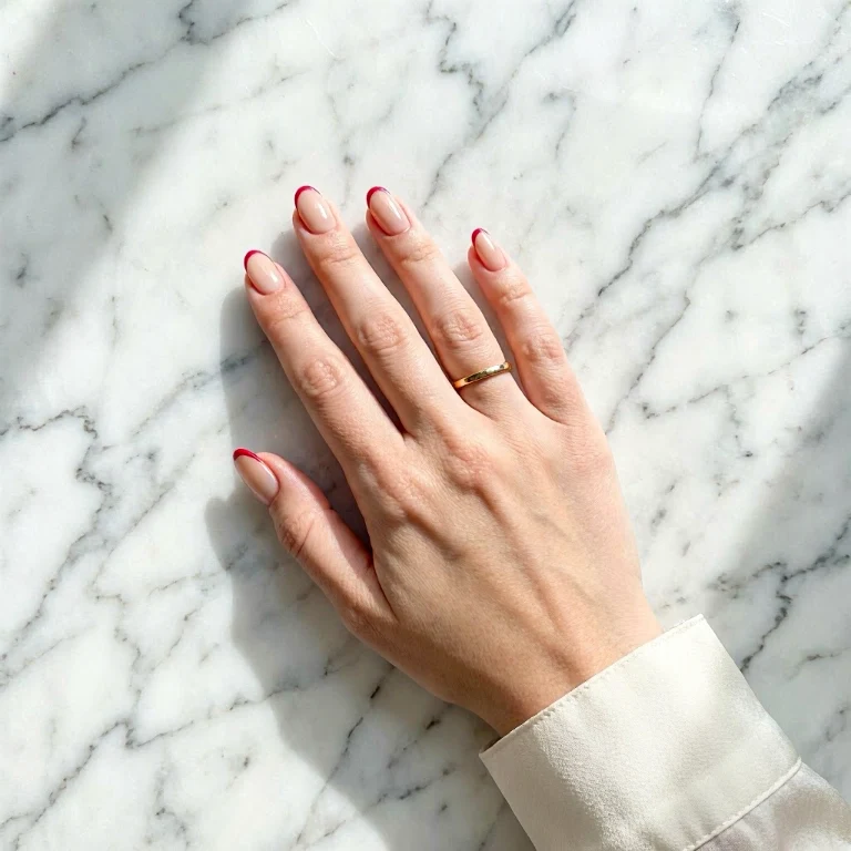 Minimal line art nails are perfect for a modern and artistic look. Thin red lines on a nude base create a subtle yet stylish design.