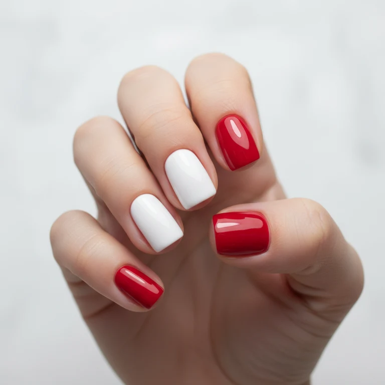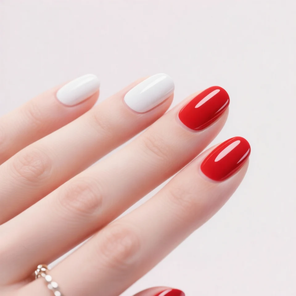 A white and red combination creates a fresh and eye-catching look. The contrast between the two shades makes your nails stand out while still keeping the design simple.