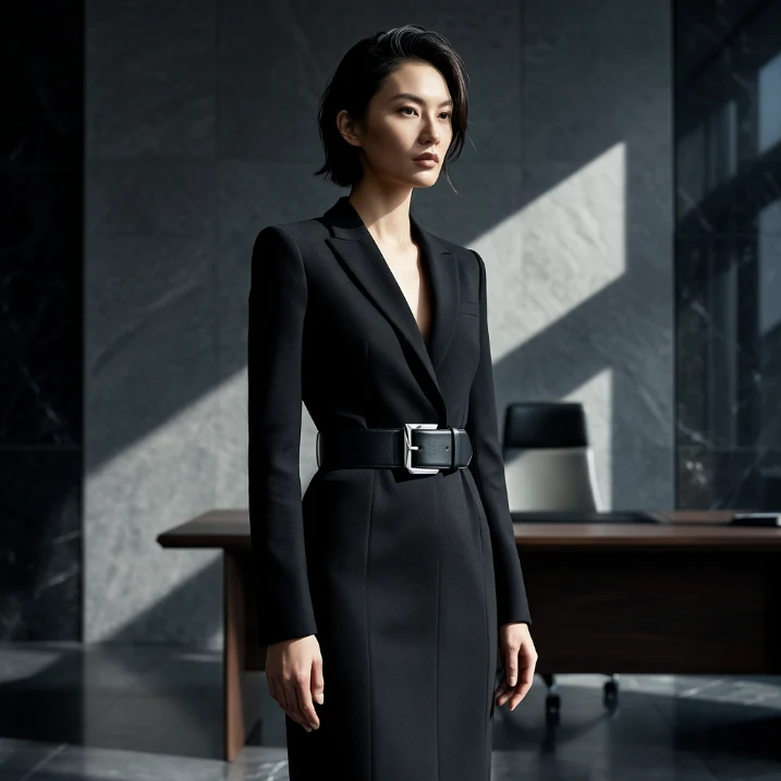 A blazer dress is a bold yet elegant business casual choice that combines structure and femininity. The tailored design gives a powerful corporate feel, while the dress format adds modern sophistication. A belt at the waist enhances the silhouette and creates a flattering, confident shape.