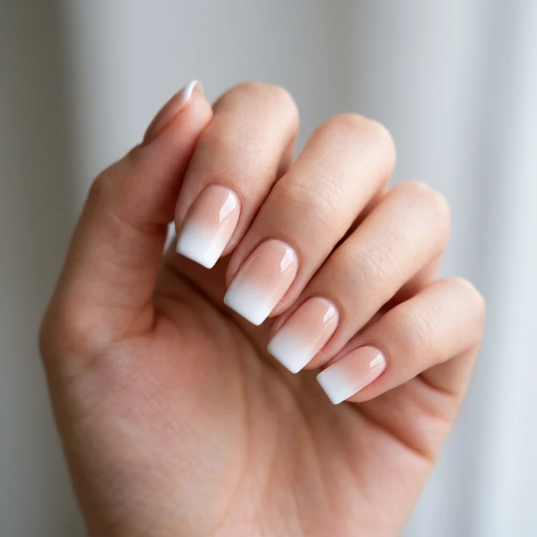 A neutral ombre fade creates a soft and dreamy effect. The gradient between nude and white feels clean and elegant, perfect for minimalist holiday nails.