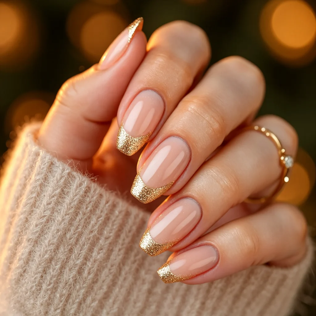 Micro glitter tips add just the right amount of sparkle to a nude base. This design feels festive without being too bold, making it perfect for minimalist lovers. The shimmer catches light beautifully.