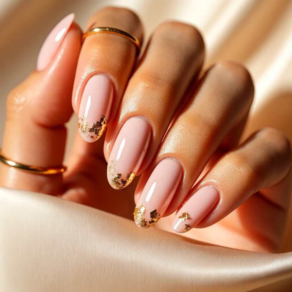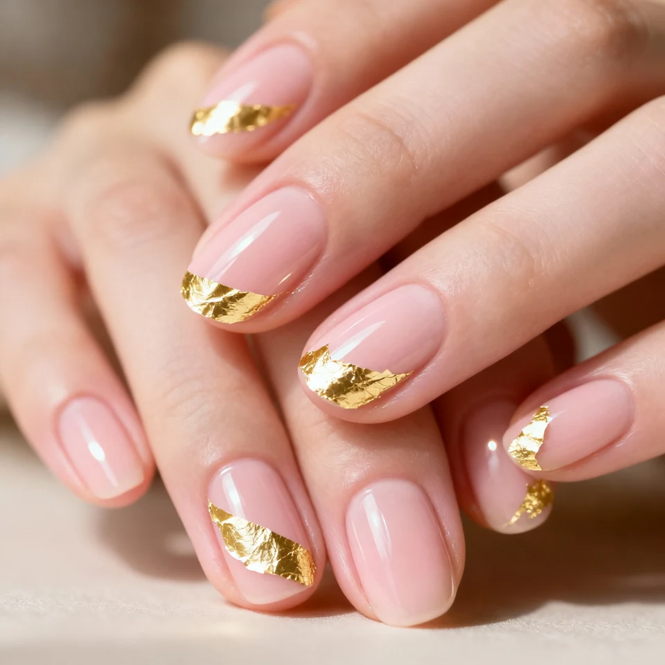 This combination feels elegant and refined, perfect for special occasions. The gold foil catches the light beautifully, creating a subtle shimmer. It’s a great way to elevate a simple nail design with minimal effort.