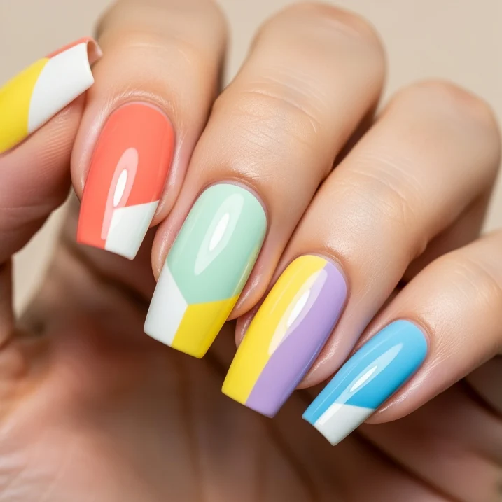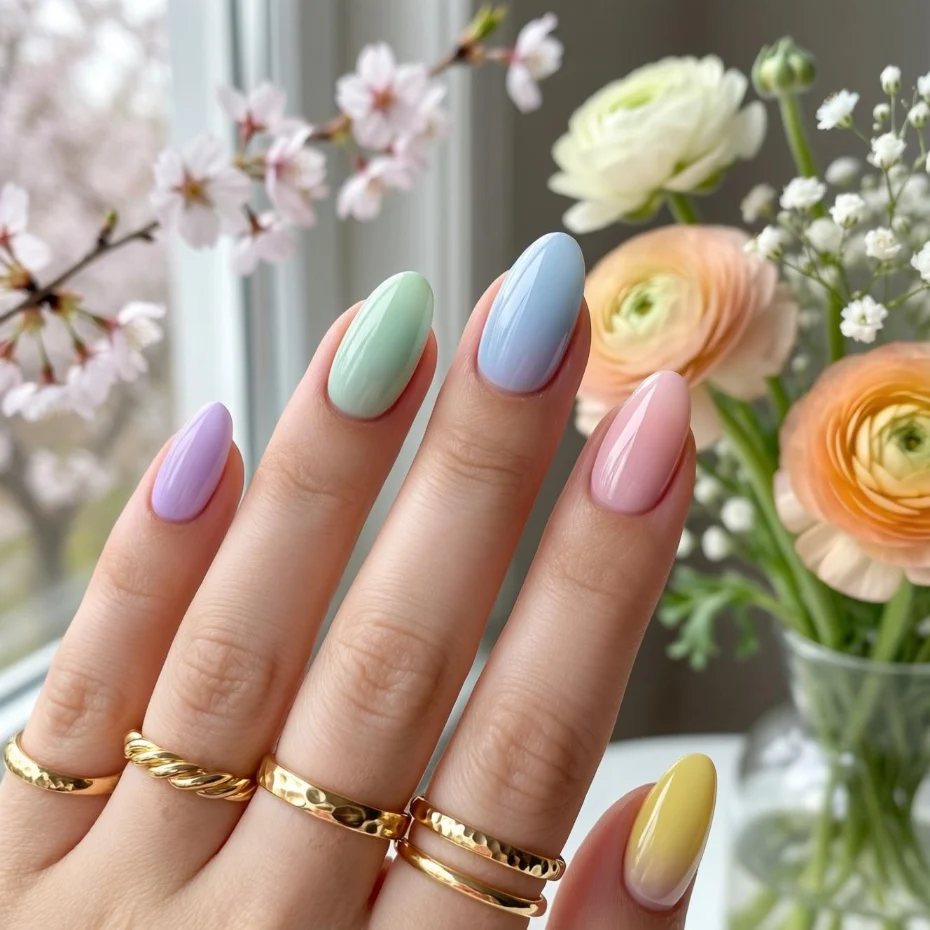 This design works best on almond or oval-shaped nails, allowing the colors to stand out without looking overwhelming. Pair it with neutral outfits to let your nails shine, or match it with pastel clothing for a coordinated spring look. The glossy finish enhances the softness, making your manicure feel polished and Pinterest-perfect.