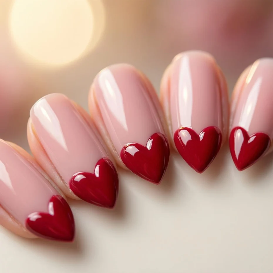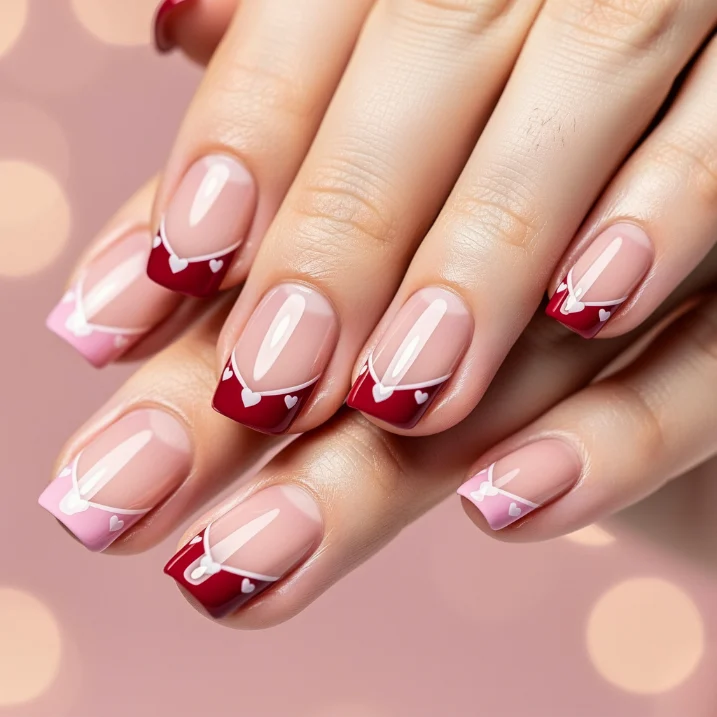 This design works well with soft pinks and reds, making it ideal for spring dates or special occasions. It adds a fun twist to the traditional French manicure.