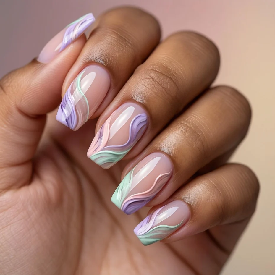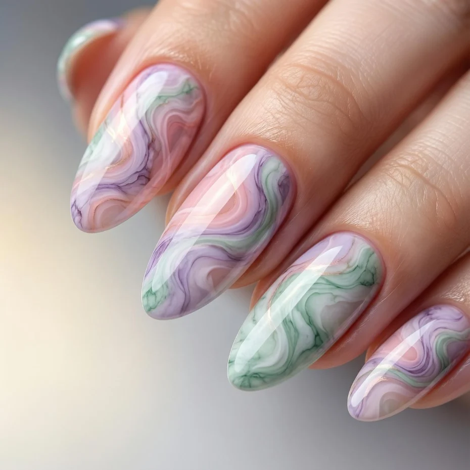 You can use pastel colors to keep it spring-appropriate. The marble effect adds depth and texture, making your nails look like miniature works of art.