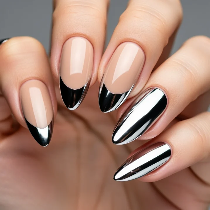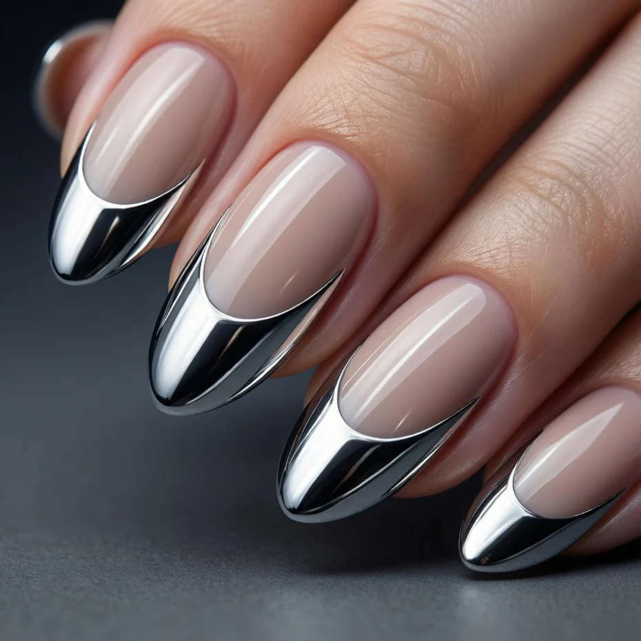 Chrome French tips bring a futuristic vibe to your spring manicure. The metallic finish reflects light beautifully, creating a sleek and polished look. It’s a great option if you want something different from traditional soft spring designs.