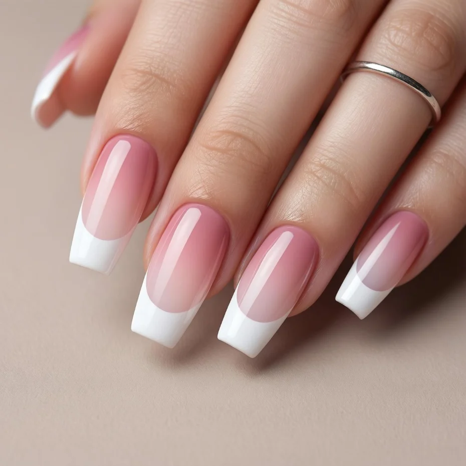 The beauty of ombre French tips lies in their versatility. You can experiment with different color combinations, from classic pink and white to soft pastels. The smooth transition adds depth to your nails, making them look effortlessly chic without being too bold or overpowering.