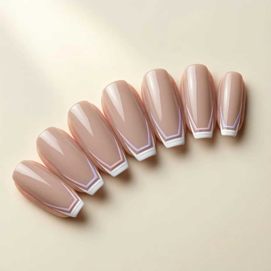 Double line French tips add a creative twist by featuring two thin lines instead of one. This design looks modern and sleek, making it perfect for those who love minimalist nail art with a unique edge. The extra line adds dimension without overpowering the look.