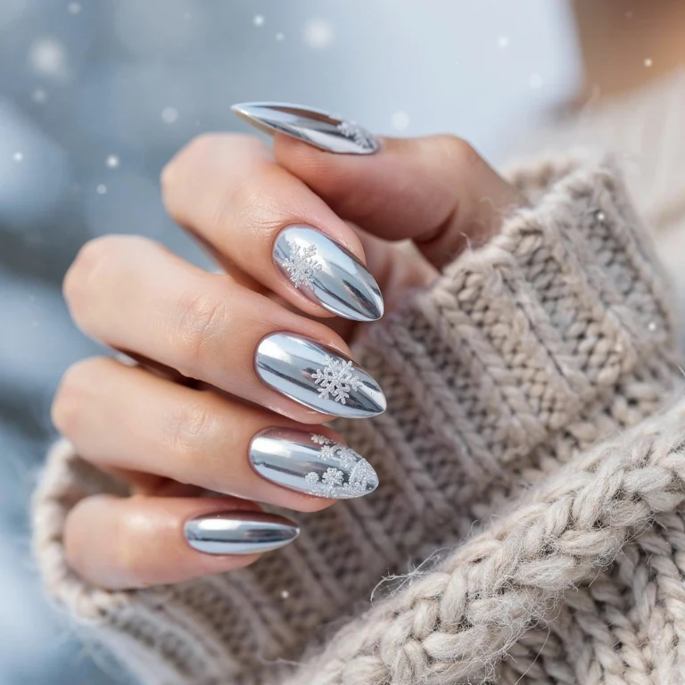 Silver metallic nails are making a bold statement this winter. Their high-shine finish creates a futuristic and edgy look that stands out instantly.
