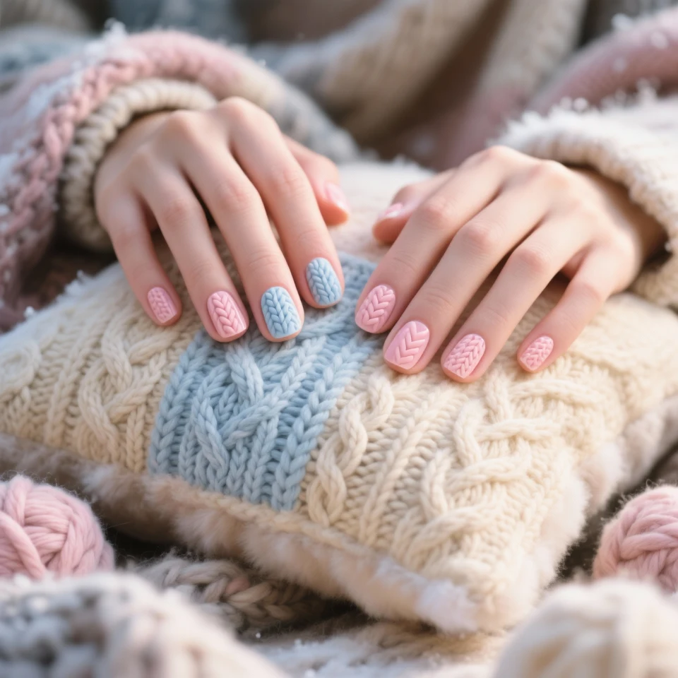 Sweater texture nails bring cozy vibes directly to your manicure. The 3D designs mimic knitted patterns, creating a warm and playful look.