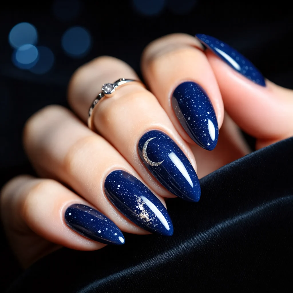 Midnight blue nails capture the beauty of winter nights. The deep shade, often with a hint of shimmer, creates a mysterious and elegant look.