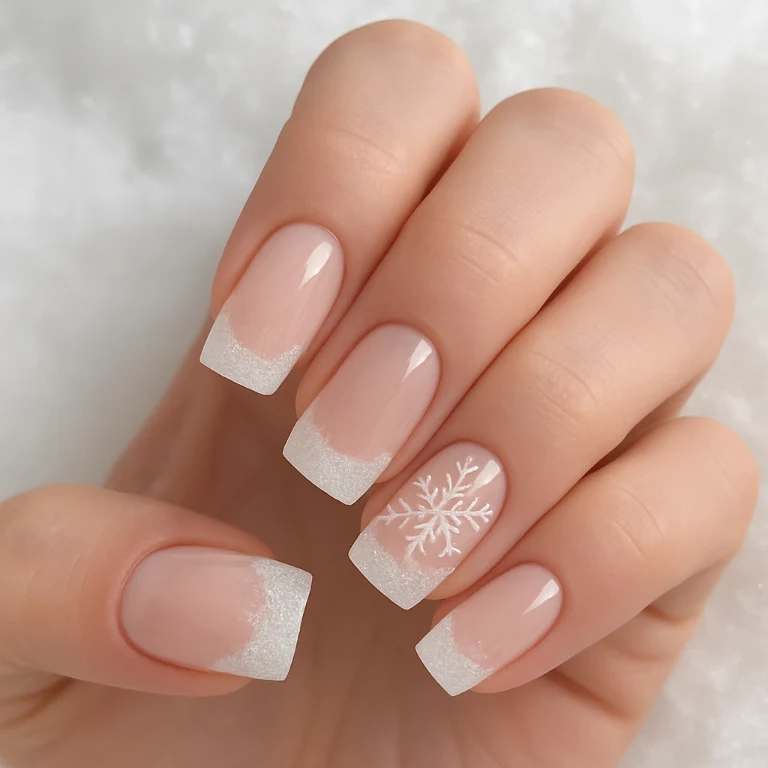 Icy French tips are a winter twist on the classic manicure. Instead of plain white, this trend uses glittery, frosted, or holographic tips to mimic snow and ice. The base remains soft and natural, giving a clean and minimal look with a seasonal upgrade.