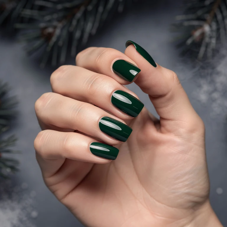 Dark forest green nails are trending as a sophisticated alternative to black. This rich shade reflects winter landscapes and adds a natural, earthy vibe to your manicure.