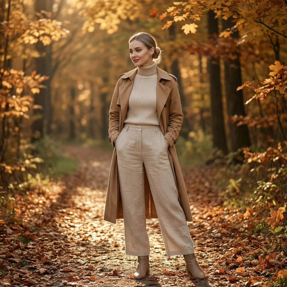 Opt for darker shades like black, burgundy, or deep green to match the fall aesthetic. Minimal accessories such as a clutch and statement earrings will enhance the outfit without overpowering it. This look is perfect for upscale dinners or city dates where you want to make a strong impression.