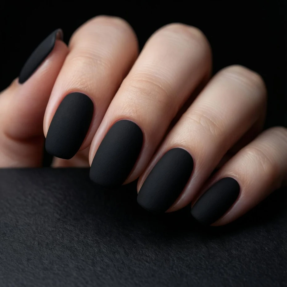 Matte black nails offer a bold and edgy look that never goes out of fashion. The matte finish adds a modern touch to the classic black manicure.