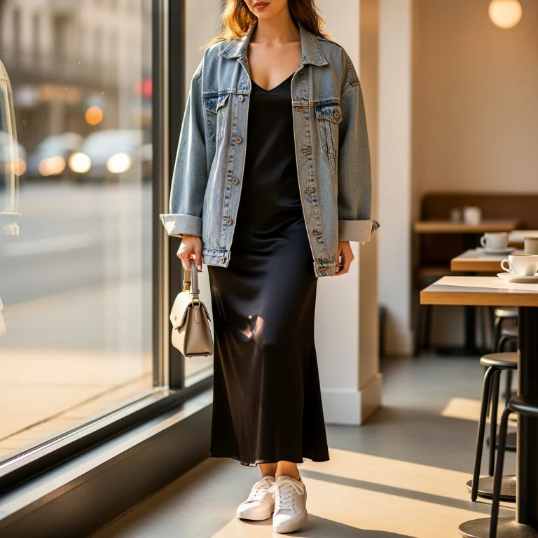 A slip dress layered with a denim jacket is the ultimate casual baddie outfit for day-to-night versatility. The soft flowy fabric of the dress paired with a structured denim jacket creates a balanced and stylish look. Pair with sneakers for daytime ease or switch to heels for a more polished evening vibe.