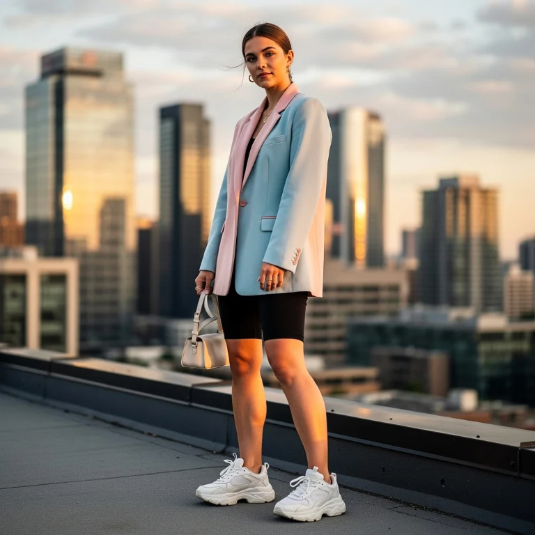 Oversized blazers layered over biker shorts are the ultimate casual baddie chic. This combination merges professional vibes with street-style comfort, perfect for making a bold statement while staying cozy. Pastel or neutral blazers work best to maintain the soft, trendy aesthetic.