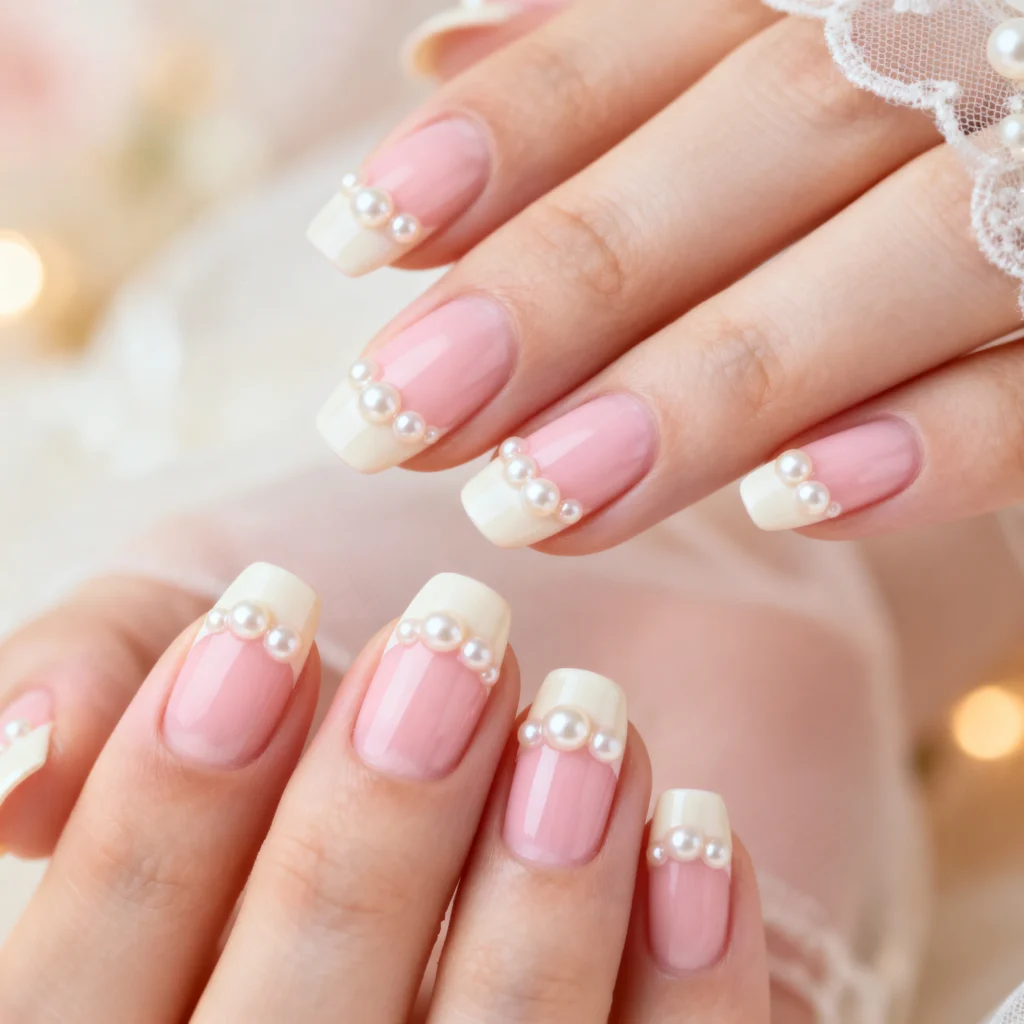 Pairing pearls with a blush or milky base enhances the overall softness of the design. The subtle shine from the pearls adds texture without overpowering the look, making your nails appear graceful and sophisticated.