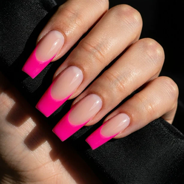 Neon pink French tips are perfect for those who want a bold and vibrant Valentine style. The bright color instantly grabs attention and adds a playful energy to your nails. This design is great for making a statement.