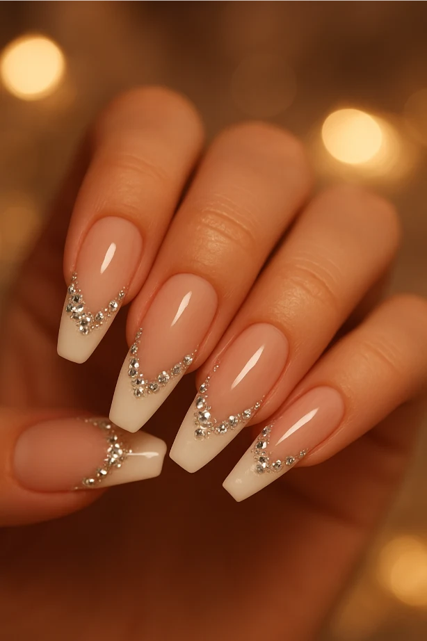 You can keep it subtle with a few stones or go bold with a fully embellished tip. Either way, the result is stunning and eye-catching. This style is perfect for those who love statement nails that feel festive and elegant.