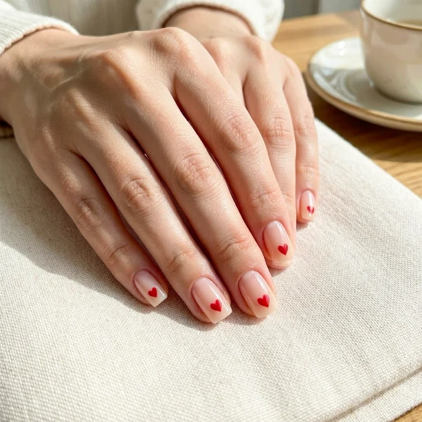 The beauty of this look lies in its uniqueness and charm. Whether you choose red, pink, or even glitter hearts, the design remains fun and stylish. It’s a great option for those who want something cute and trendy without going overboard, making it perfect for both casual and romantic occasions.
