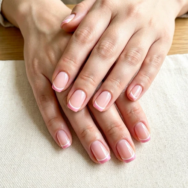 Minimalist white and pink French tips are perfect for a soft and understated Valentine look. The delicate combination of colors keeps the design simple yet elegant, making it suitable for everyday wear. This style is ideal for those who prefer subtle beauty.